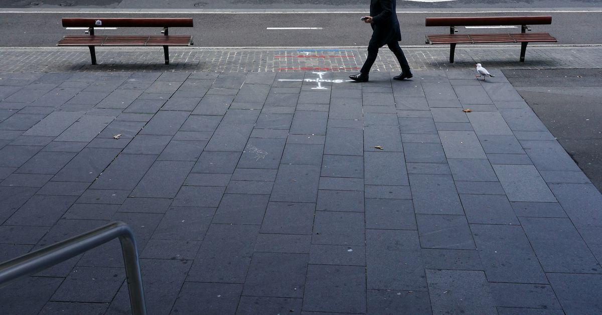 A lone man walks up a deserted street in the city centre during a lockdown to curb the spread of a coronavirus disease (COVID-19) outbreak in Sydney, Australia, July 12, 2021. REUTERS/Loren Elliott