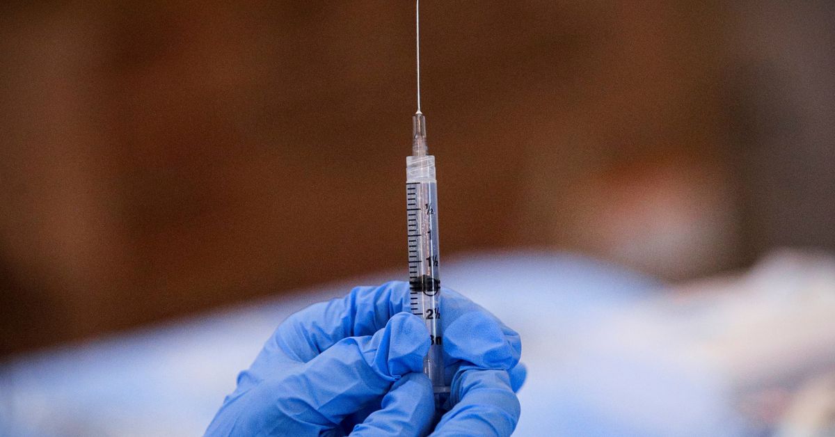 A syringe is filled with a dose of Pfizer’s COVID-19 vaccine at a pop-up community vaccination center at the Gateway World Christian Center in Valley Stream, New York, U.S., February 23, 2021. REUTERS/Brendan McDermid