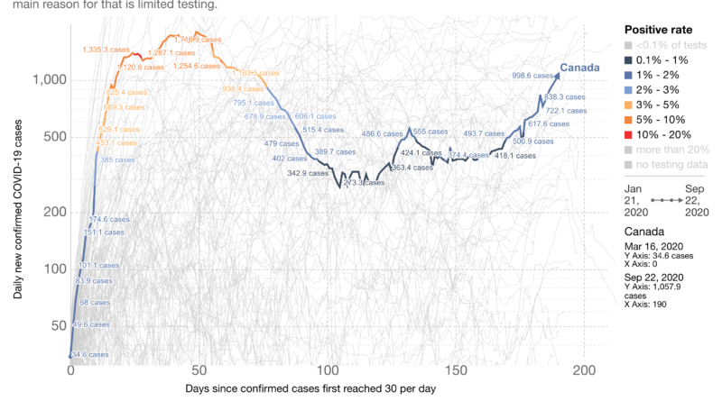 Canada is at a COVID-19 ‘crossroads’, health officials have warned and could see more than 1,000 new daily cases per day over the next two weeks. The country’s Public Health Agency said: “Canada is at a crossroads and individual action to reduce contact rates will decide our path.”