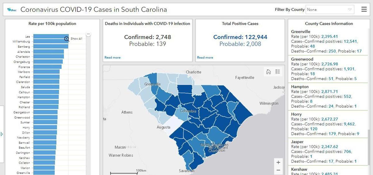 This brings South Carolina’s number of confirmed cases to 122,944, probable cases to 2,008, confirmed deaths to 2,748, and 139 probable deaths.