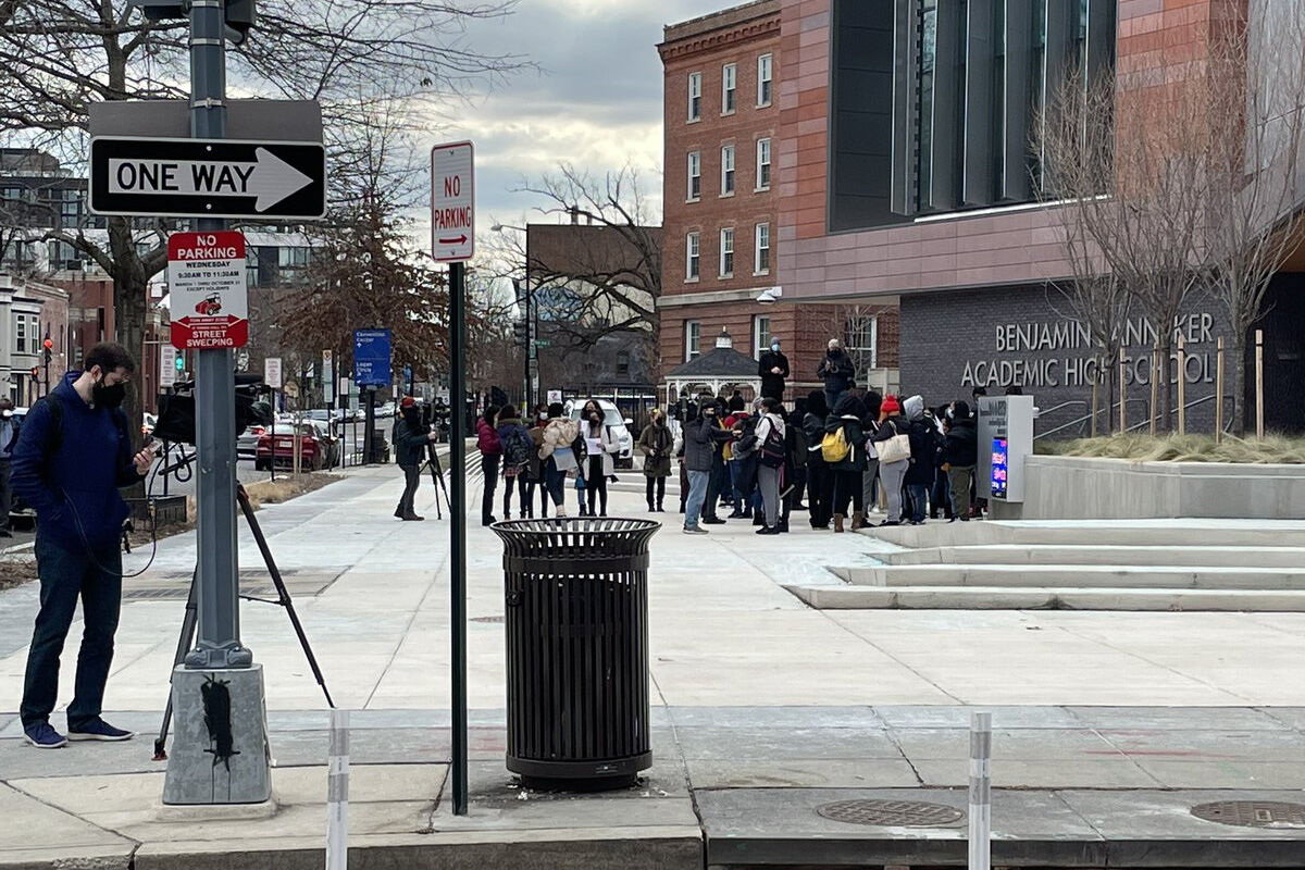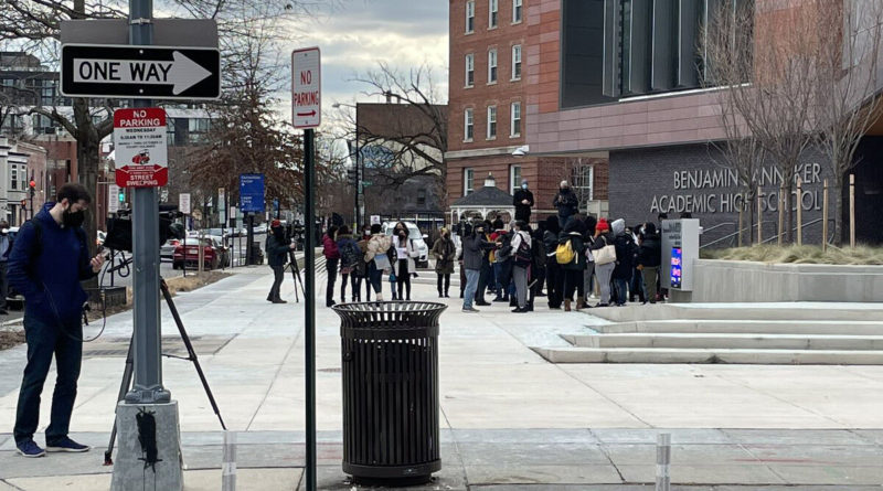 Social media posts showed dozens of students outside Benjamin Banneker High School in Northwest.