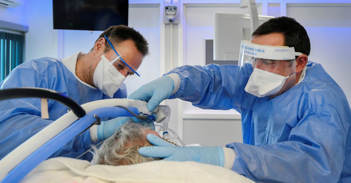 Medics treat a patient infected with COVID-19, in the intensive care unit at Maastricht UMC+ Hospital in Maastricht, Netherlands, November 10, 2020. REUTERS/Piroschka van de Wouw