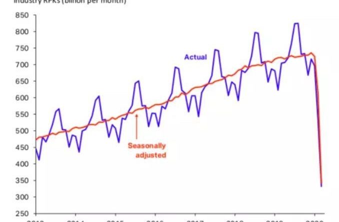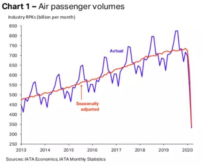 • Air passenger traffic declined 98% in April as the pandemic hit.