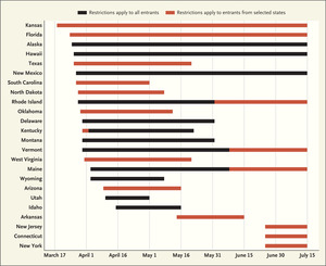 States with Orders Restricting Interstate Travel, March 17 through July 15, 2020.