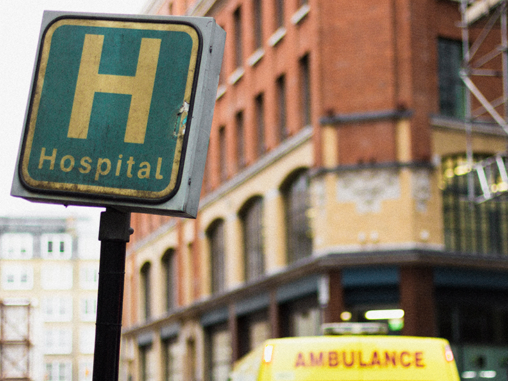 An image of a hospital sign and ambulance in the UK to accompany a news piece, "Treating COVID-19 may increase antibiotic resistance" which used data from the UK.Share on Pinterest