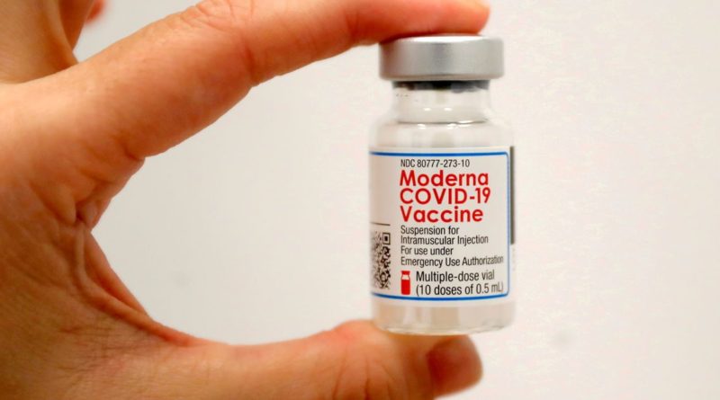 A healthcare worker holds a vial of the Moderna COVID-19 Vaccine at a pop-up vaccination site operated by SOMOS Community Care during the coronavirus disease (COVID-19) pandemic in Manhattan in New York City, New York, U.S., January 29, 2021. REUTERS/Mike Segar