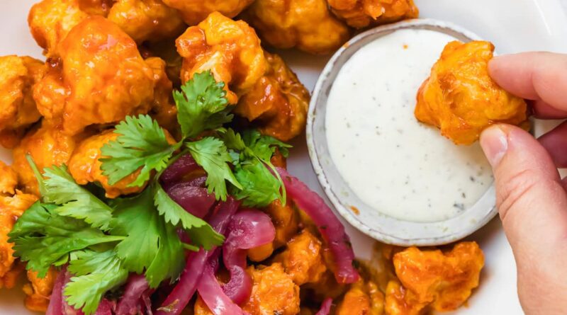 Air Fryer Cauliflower Wings with Honey Sriracha and dipping sauce