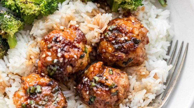 Healthy Asian Chicken Meatballs are made with ground chicken, ginger, and spices and coated with a honey-soy sauce. An easy weeknight dinner!