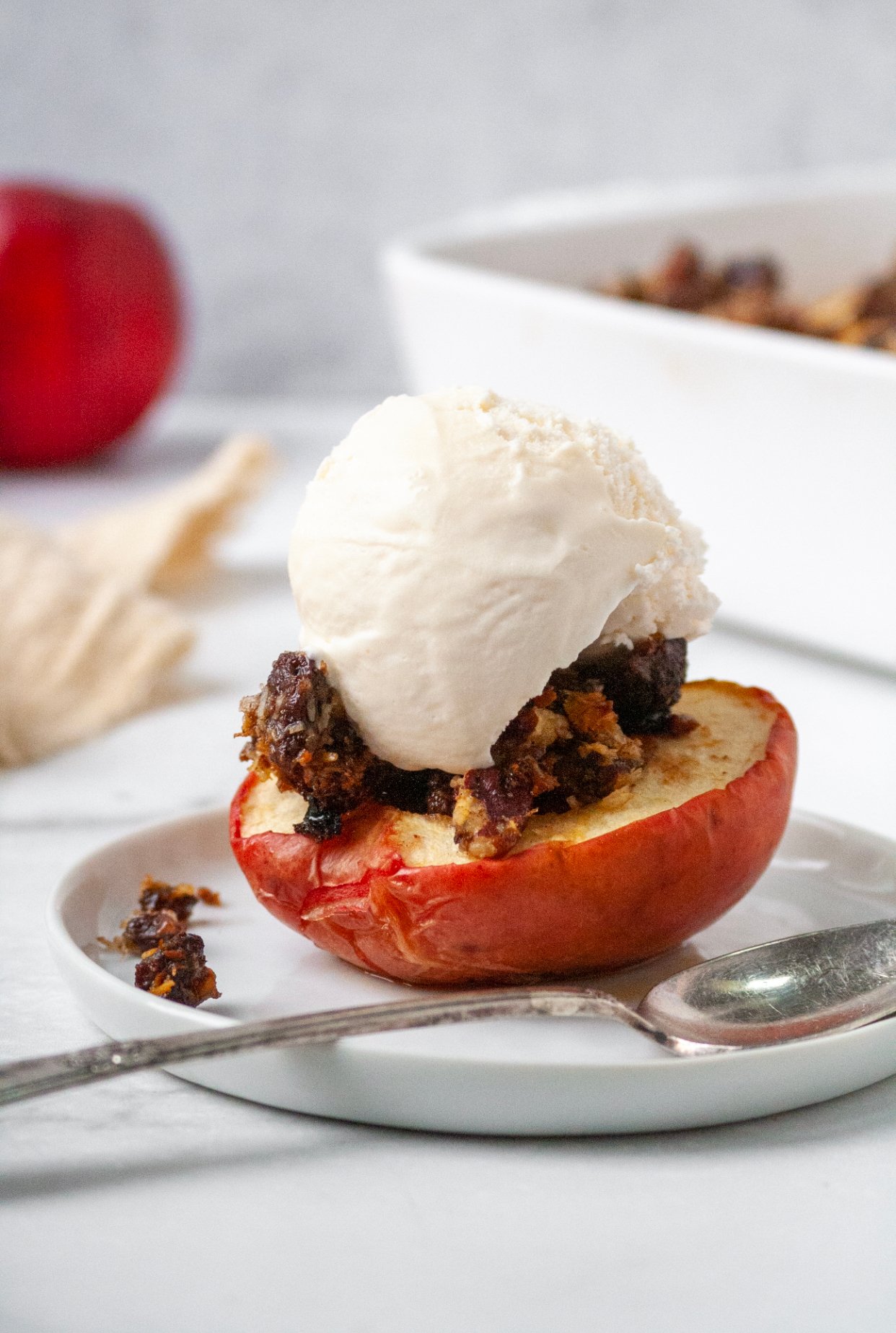 Serve these baked apples warm with a scoop of vanilla ice cream or a dollop of whipped cream.