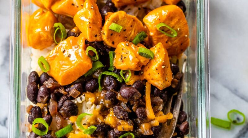 Keywords: buffalo chicken rice bowls, healthy buffalo chicken, high protein, meal prep meals