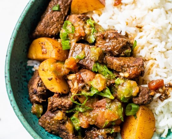 I grew up eating carne guisada, my mom made it for dinner all the time! Serve this over rice with a little aji picante and you’ll have a delicious comfort dish, Latin style!