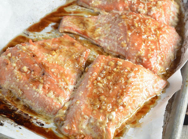 Spoon any sauce back on top that has collected on the baking sheet. Serve with whole-grain ramen and veggies or over a salad. The fish will flake right off the skin when ready to eat.