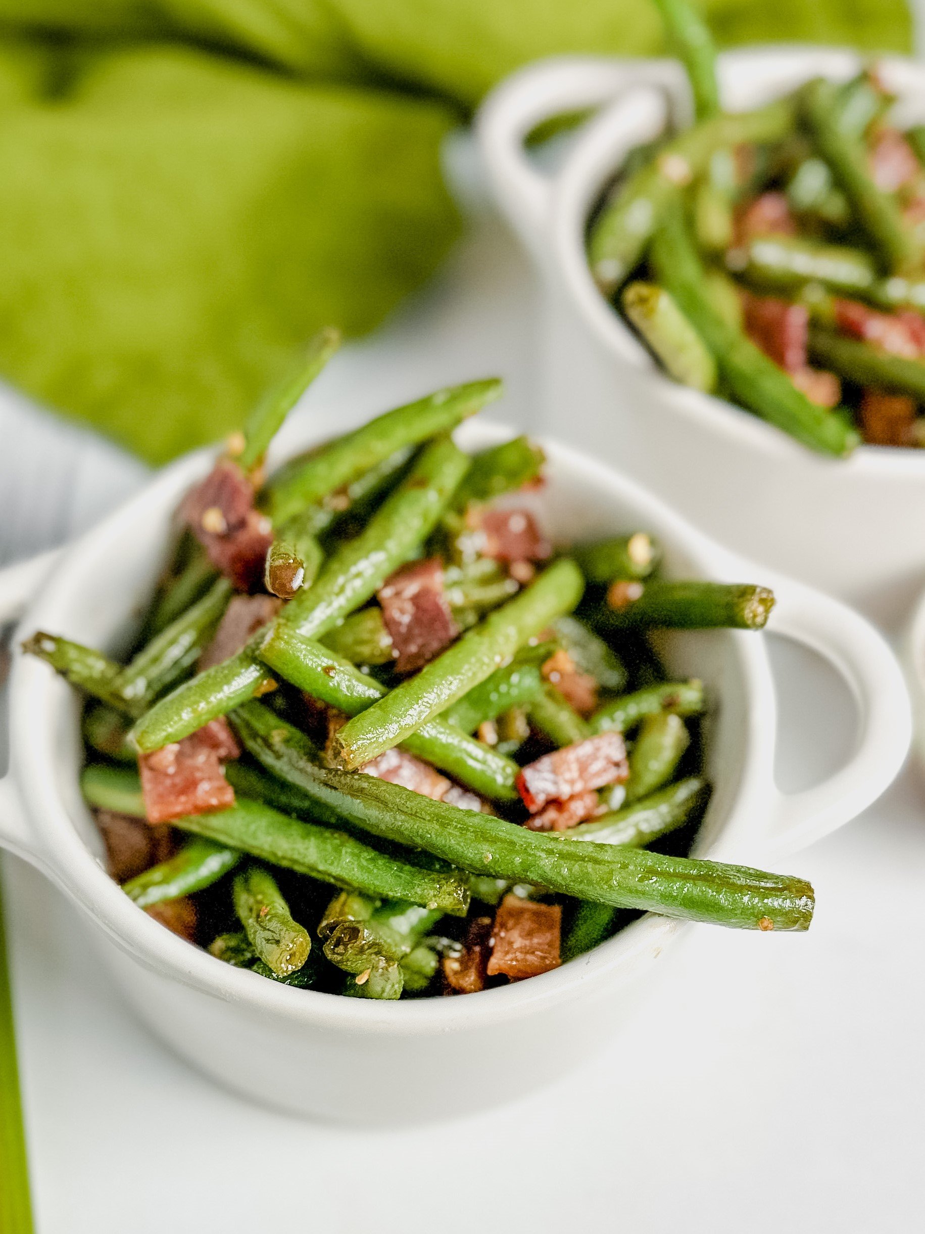 These green beans with bacon are a flavorful and tasty side dish perfect for any occasion! The crispy bacon adds the most delicious flavor. This 25-minute vegetable side dish is great paired with chicken, steak, pork, or even pasta. Serve it for Christmas, Thanksgiving, holidays, or regular weeknight dinners!