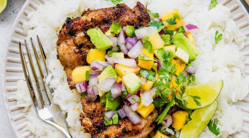 To make this dish work for picky eaters, I season a few pieces of chicken with just salt, garlic powder, and a little brown sugar before grilling. It’s simple, flavorful, and still pairs well with the mango avocado salsa—or serve theirs plain with some rice or fruit on the side.