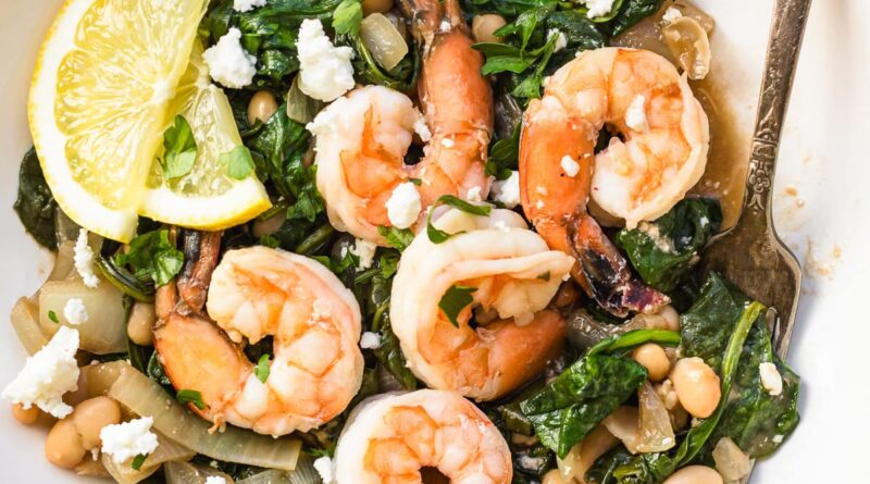 Shrimp and White Beans with Spinach and Feta