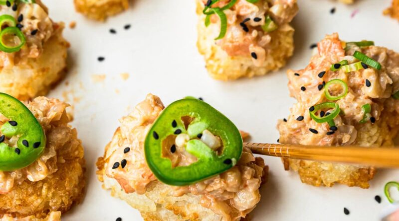 These Spicy Shrimp Crispy Rice bites taste like something straight off the menu at a high-end sushi spot—at least, that’s what my husband said after his first bite. (He even joked they should be featured at our favorite local sushi place.) Each bite of these crunchy, golden rice squares topped with spicy shrimp tossed in sriracha mayo is a flavor bomb. And the best part? No deep frying required. The rice gets perfectly crispy in the air fryer, making this recipe lighter, easier, and way less messy. For other Asian-inspired appetizers, try my Spicy Crunchy Tuna Tartare and Spicy California Shrimp Stack.