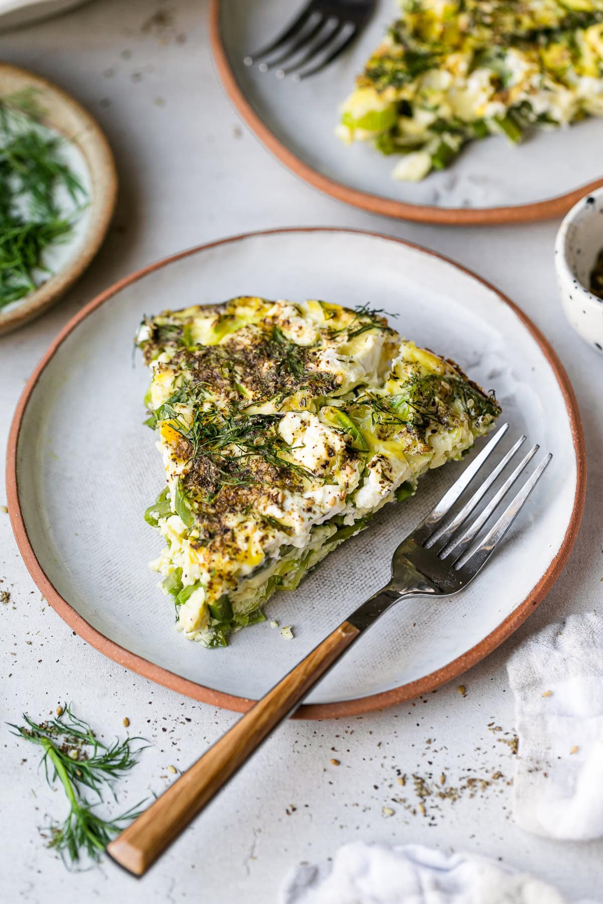 This low-carb spring Vegetable Crustless Quiche made with asparagus, leeks and fresh dill is the perfect way to embrace seasonal ingredients. Great for breakfast, brunch, or a light dinner!