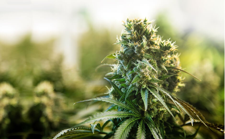 flowering cannabis plant with white pistils
