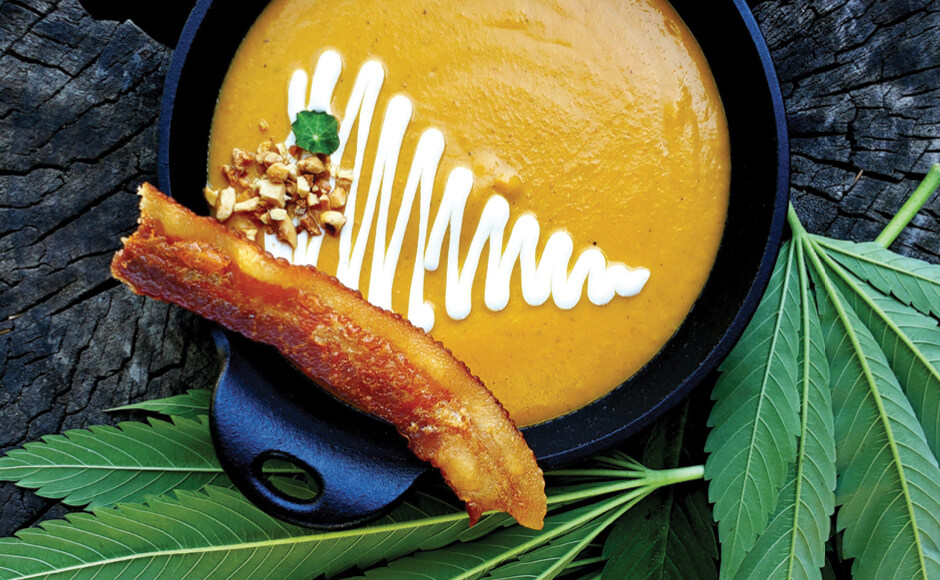 with Cannabis Pollen Gingered Cream + Cannabis Maple Lacquered Bacon