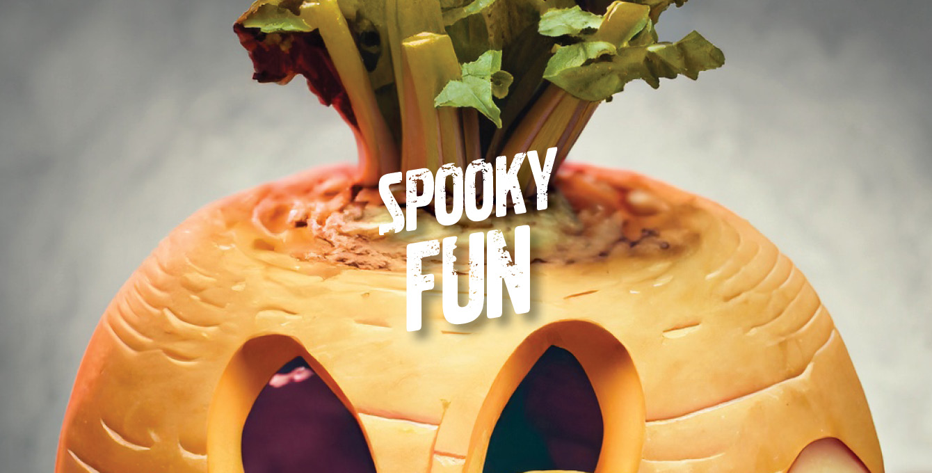 Beets are similar to turnips in size and texture. Their dark red color adds a ghoulish vibe to the Halloween display. Carved beets will last up to a week if kept cool outside or in the fridge until you are ready to set them out. Beets bleed, and as you carve them, your hands will get blood red – how much fun for the kids is that?
