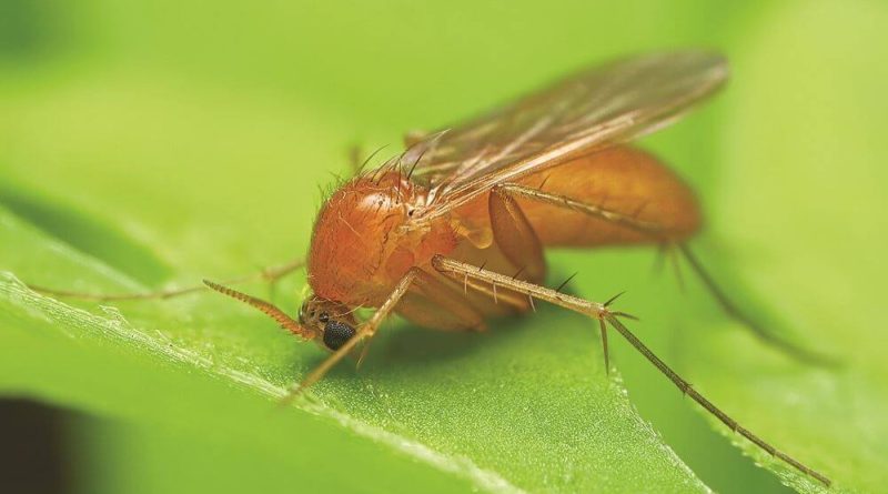 One of the biggest nuisances in the hobby gardener’s growroom, the fungus gnat, tends to have more indirect consequences than the direct damage brought on by spider mites. Adult fungus gnats appear as small, delicate black flies with long antennae. Their most distinctive physical trait is the presence of a Y-shaped vein on their wings.