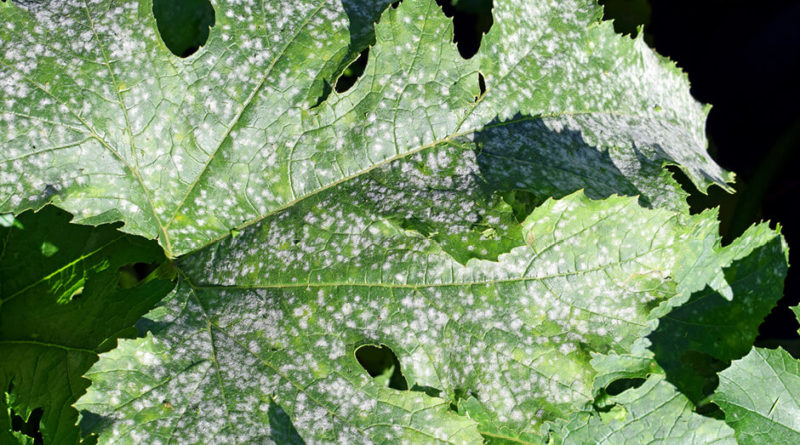 Cutting zucchini leaf with Powdery mildew fungal disease. Source: KanphotoSS/Shutterstock