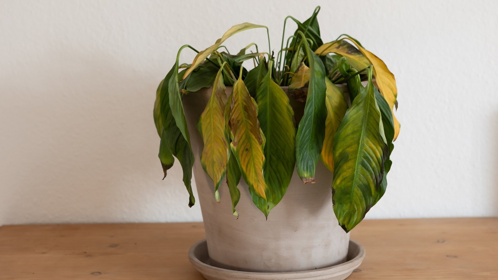 When wilting starts at the bottom and works its way to the top, it could mean your leaves are completing their life cycle or your plant has contracted a wilt disease. At the end of its life, wilting may be the last sign that you need to throw away your houseplant.