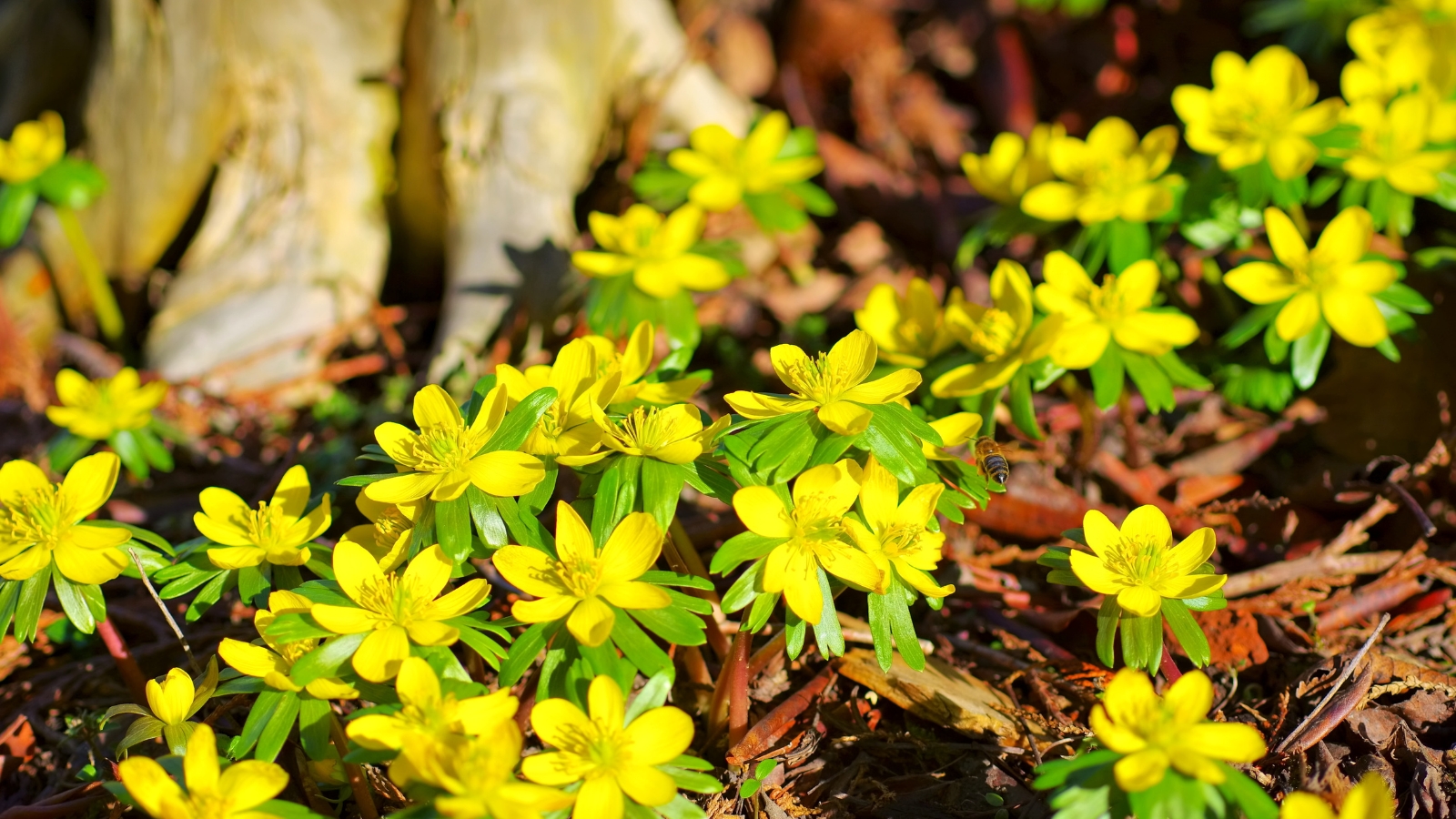 Winter aconite, scientifically Eranthis hyemalis, is one of the first signs of spring in a late winter garden. The scientific name hints at this flowering time, with Er referring to spring and anthis to early flowering. The specific epithet also adds to the description, meaning winter blooming.