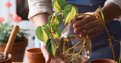 Repot in spring, only when the plant has outgrown its pot. Move it into a pot that’s only slightly larger, because a container that’s too big will hold too much water and may cause root rot. Also, be sure to use a container with a drainage hole. If you want to cover up a plain nursery pot, slip it into a cachepot (a decorative planter without drainage holes). I put small river stones in the bottom of my cachepots to keep the pot above the drainage water.