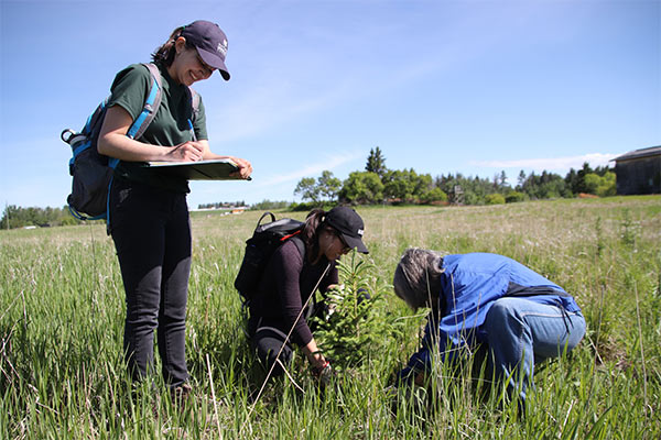 NCC intern and volunteers conducting a tree survey at Upper North Saskatchewan River Basin (Photo by NCC)