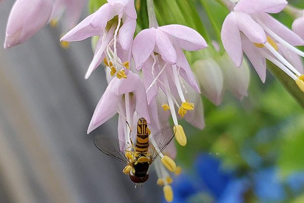 Another favourite backyard moment is standing near my wild bergamot patch and watching bumble bees forage. Wild bergamot, a native plant that ranges from Quebec to British Columbia, attracts bees, butterflies and hummingbirds. Many times, I find chubby common eastern bumble bees sipping nectar from the tubular flower lips. Bumble bees don’t seem perturbed when I stand motionless and close by, so close I can hear their buzz and watch their long tongue reach far into the flower.