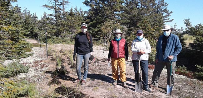 Volunteers transplant short-ligule ammophilia plants on the sandbar of the Barachois of Malbaie in Gaspésie (Photo by NCC)